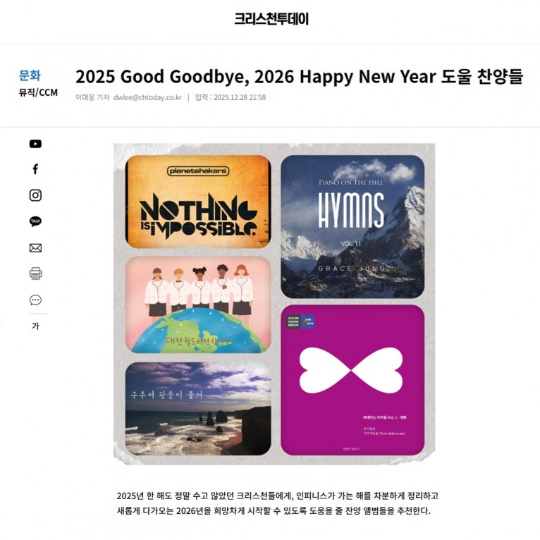 뮤직타임 [기획기사] 2025 Good Goodbye, 2026 Happy New Year 도울 찬양들(크리스천투데이)