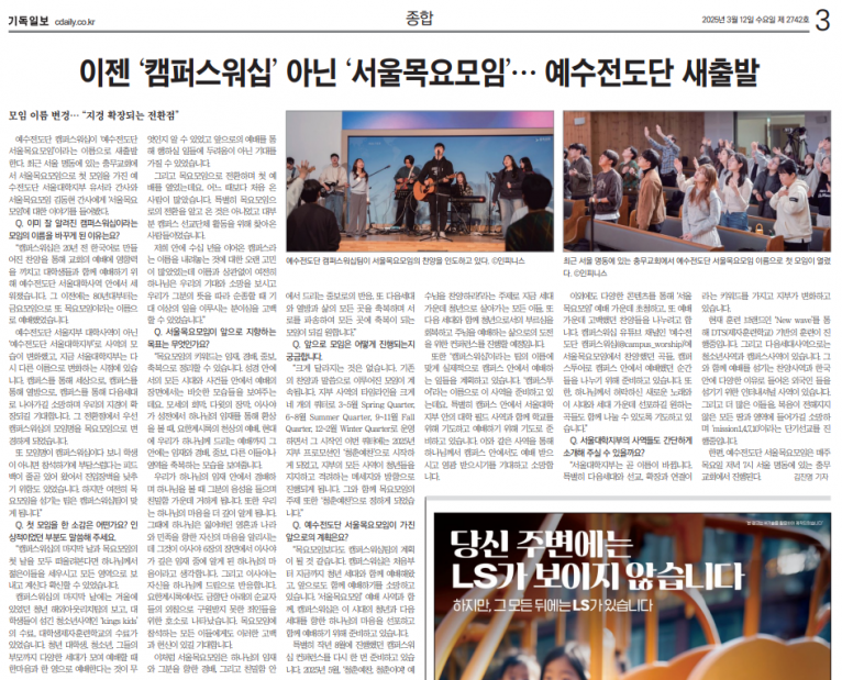 [기사] ‘이젠 캠퍼스워십 아닌 서울목요모임’ 예수전도단 새출발(기독일보)