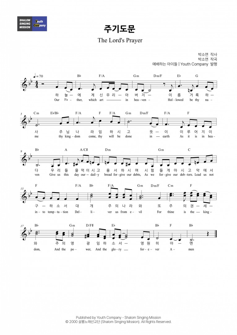 [악보] 주기도문 (The Lord’s Prayer) - 예배하는 아이들 (예배하는 아이들 Vol. 1 - 예배)
